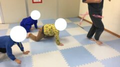 「次はどんな動物かな?」とワクワクしながら、最後まで笑顔で参加してくれました。今週は、他にも動物になりきる動きがたくさん入っていますので、ぜひ楽しみにしていてください!