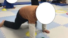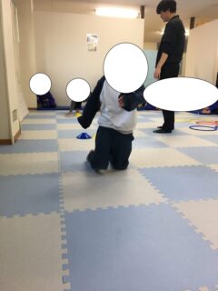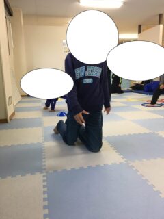 ペンギン歩きでは腕を横に広げて膝立ちで歩き、アヒル歩きではしっかりしゃがんでお尻を落としながら前に進みます。どちらもバランス感覚や下半身の力がしっかり必要です(*^-^*)