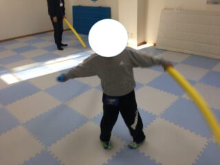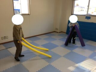 今日の運動遊びでは、みんな大好きなスポンジ棒遊びを行いました。