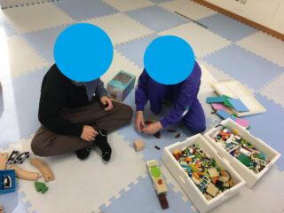 教室に入るとさっそく電車のレールを作って遊んでみたり、