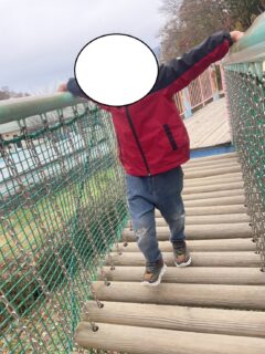 揺れる遊具にも挑戦し、最初はちょっとドキドキしながらも