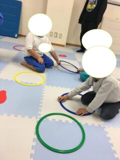 職員が「赤!」と言うと、子どもたちは「どこだ!?」とキョロキョロしながら、赤いマーカーや赤いものを探してタッチ(*^-^*)