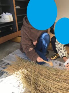 しめ縄作りの準備では「稲叩き🌾🔨」を実施しました!