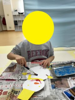自由時間には、雪だるまの形の台紙に絵の具を指で塗ったり、