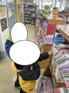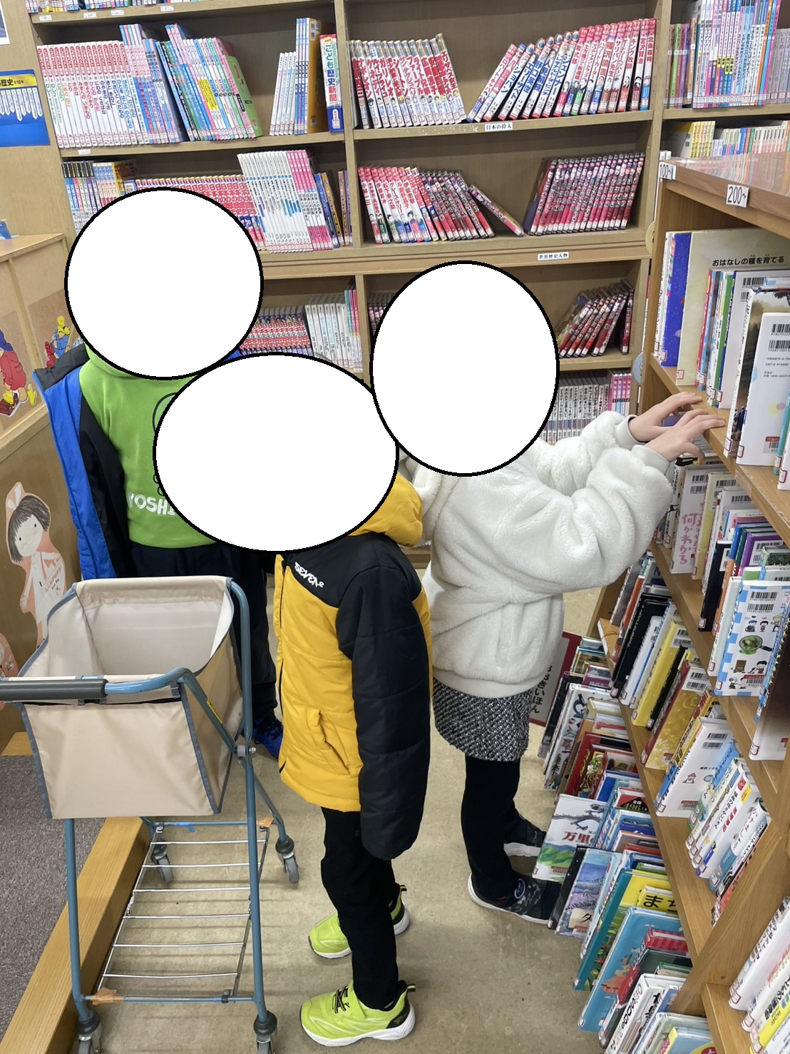 棚の表示をよく見たり、気になるタイトルを手に取ったりと、自分の読みたい本を一生懸命探していました。
