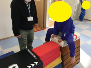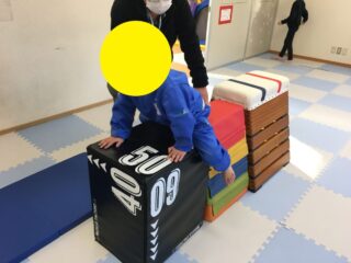 今週のサーキットの中に跳び箱を飛び越えるのではなく、乗り越える運動があります😊