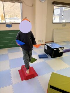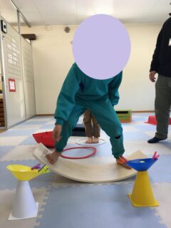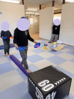 「バランスを取ってやってみよう」は最近教室に仲間入りした療育道具である、バランスボードを用いた取り組みです🏄